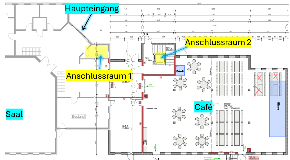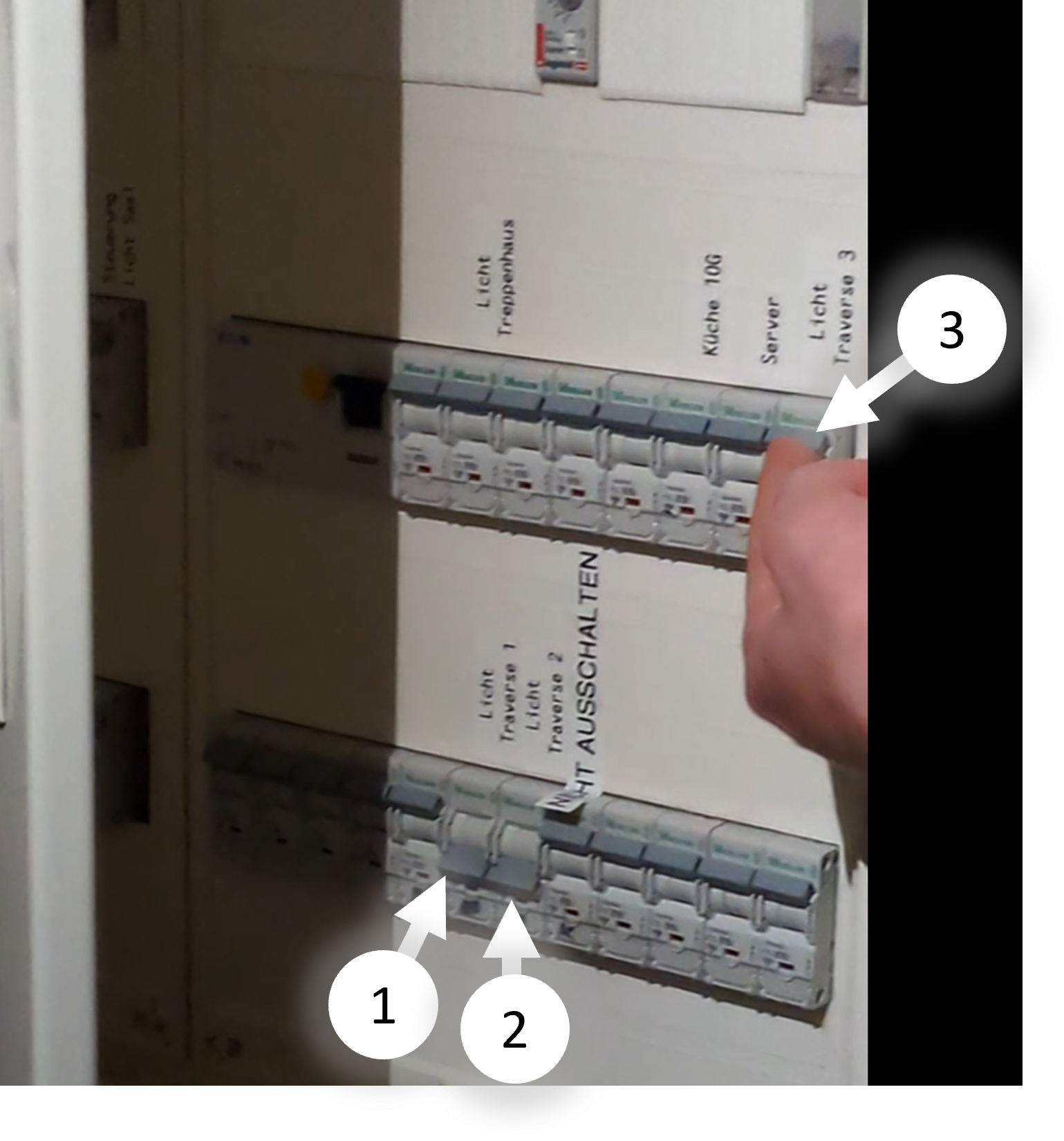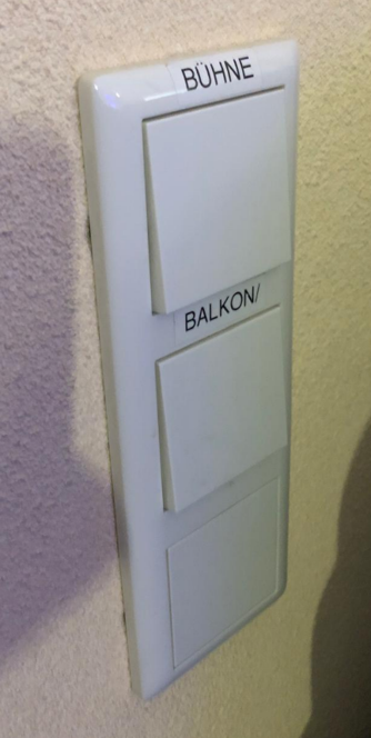 ✅ Die Lichtschalter für Bühne und Balkon sind ausgeschaltet