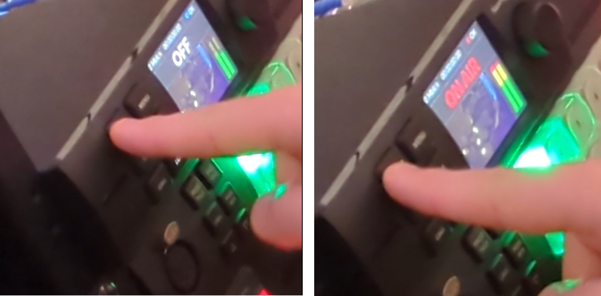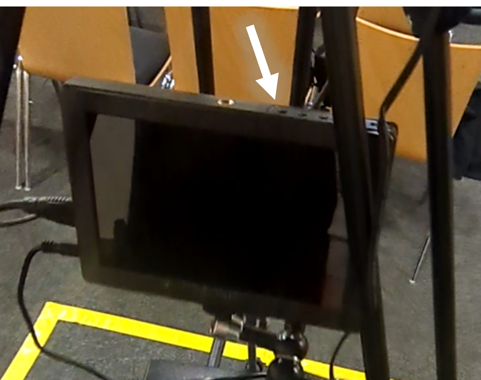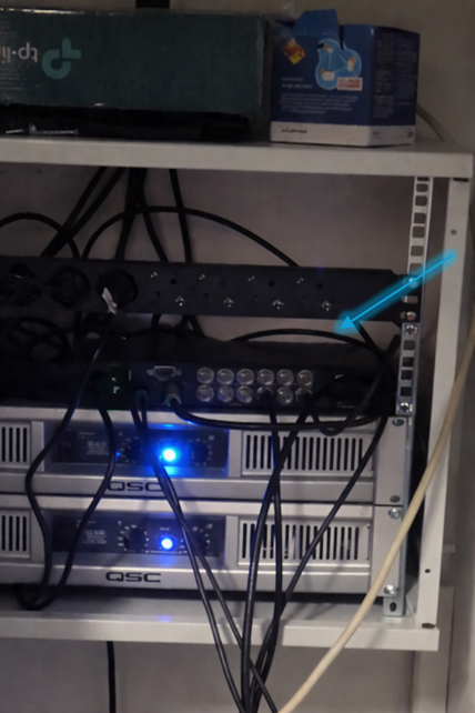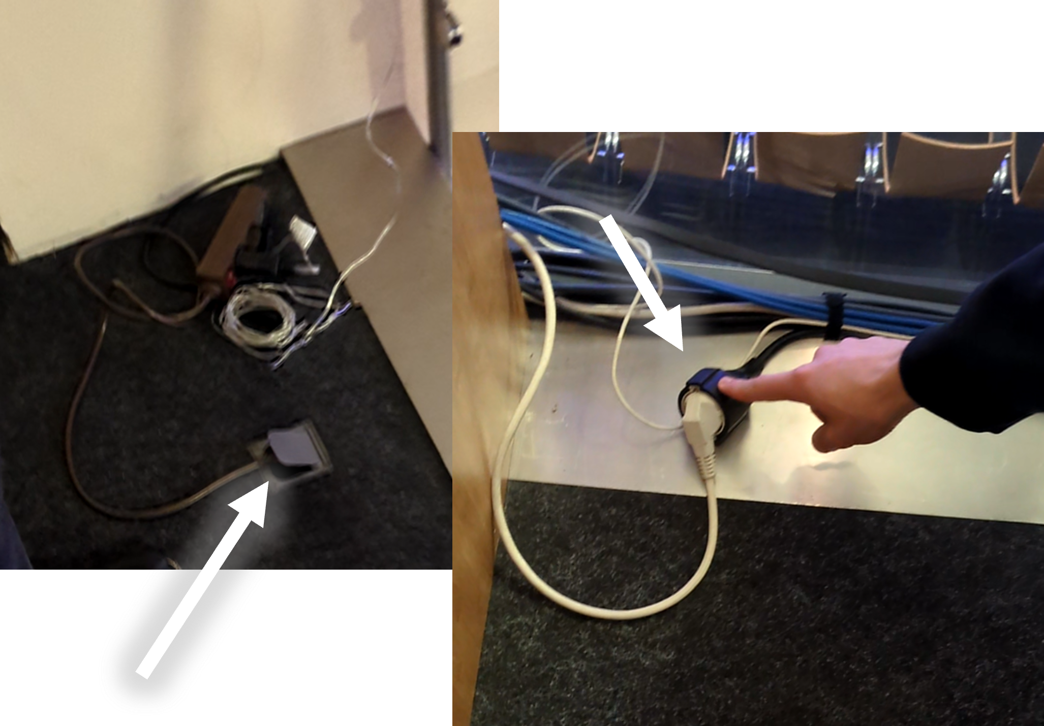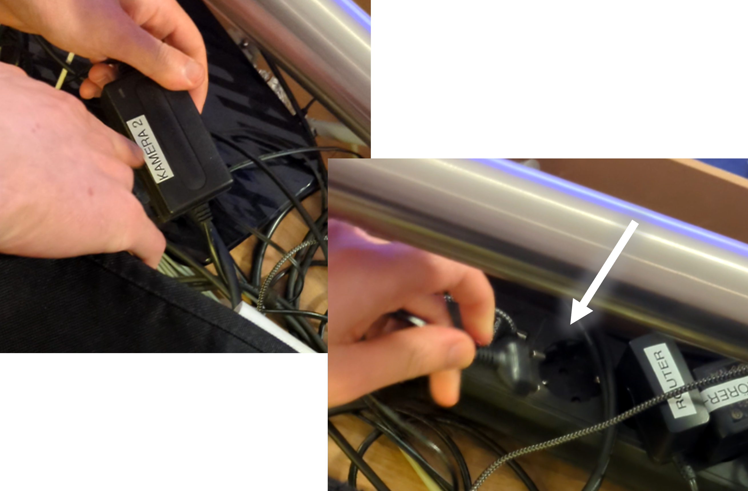 - Wenn der Bildmischer dadurch an geht, hört man ein ‘huuuiiii’ (der Lüfter vom Bildmischer) -> ✅ Dann sollte der Bildmischer rot leuchten und alles funktionieren