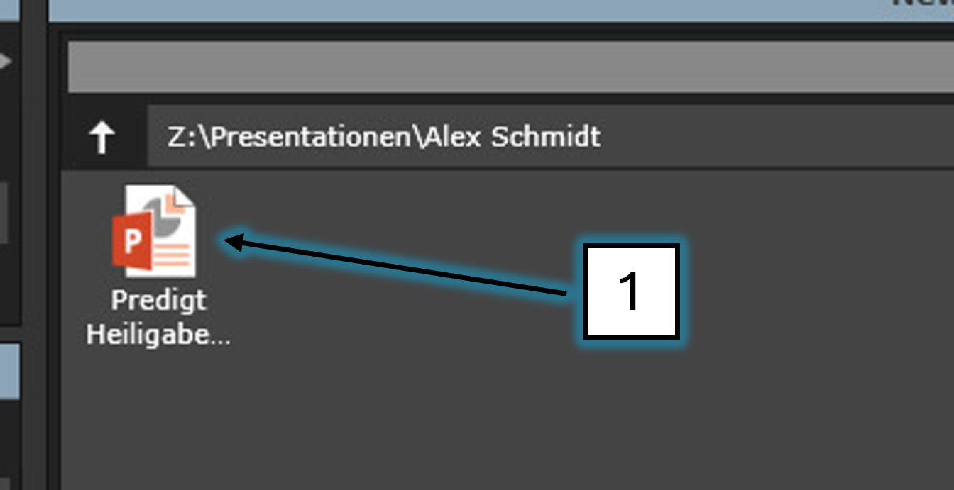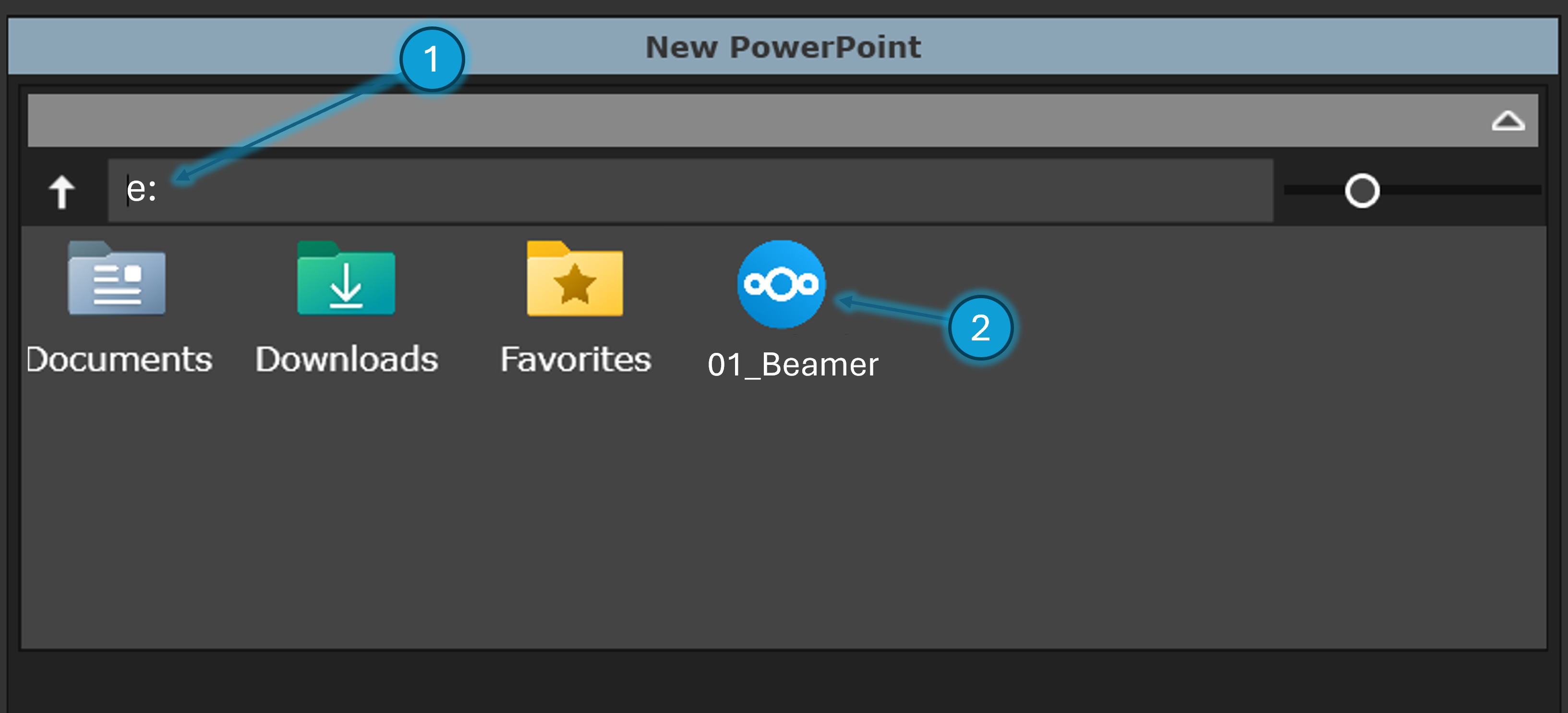Durchsuche die Festplatte nach der Präsentation oder gib den Pfad direkt ein