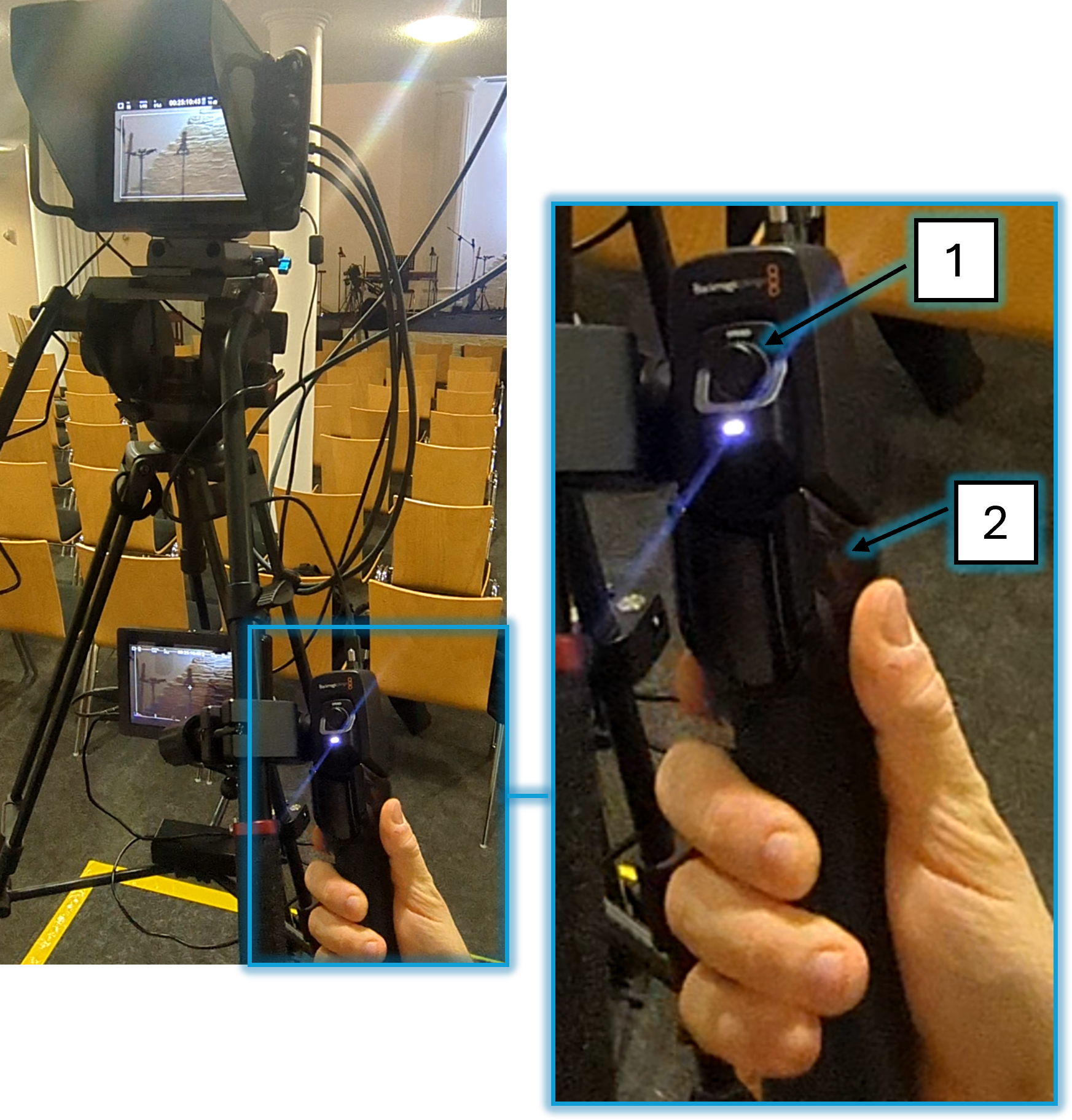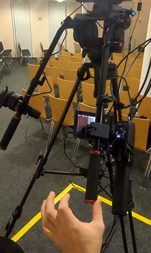 ✅ Regie Headset ist eingeschaltet, Verbindung zu Kameraleuten steht