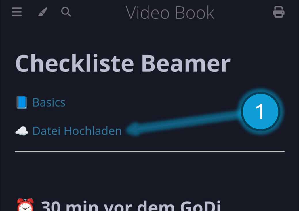 Wenn man mit dem Handy den QR-Code am Beamer-Tisch scannt, gibt es da einen Knopf ‘☁️ Datei Hochladen’
