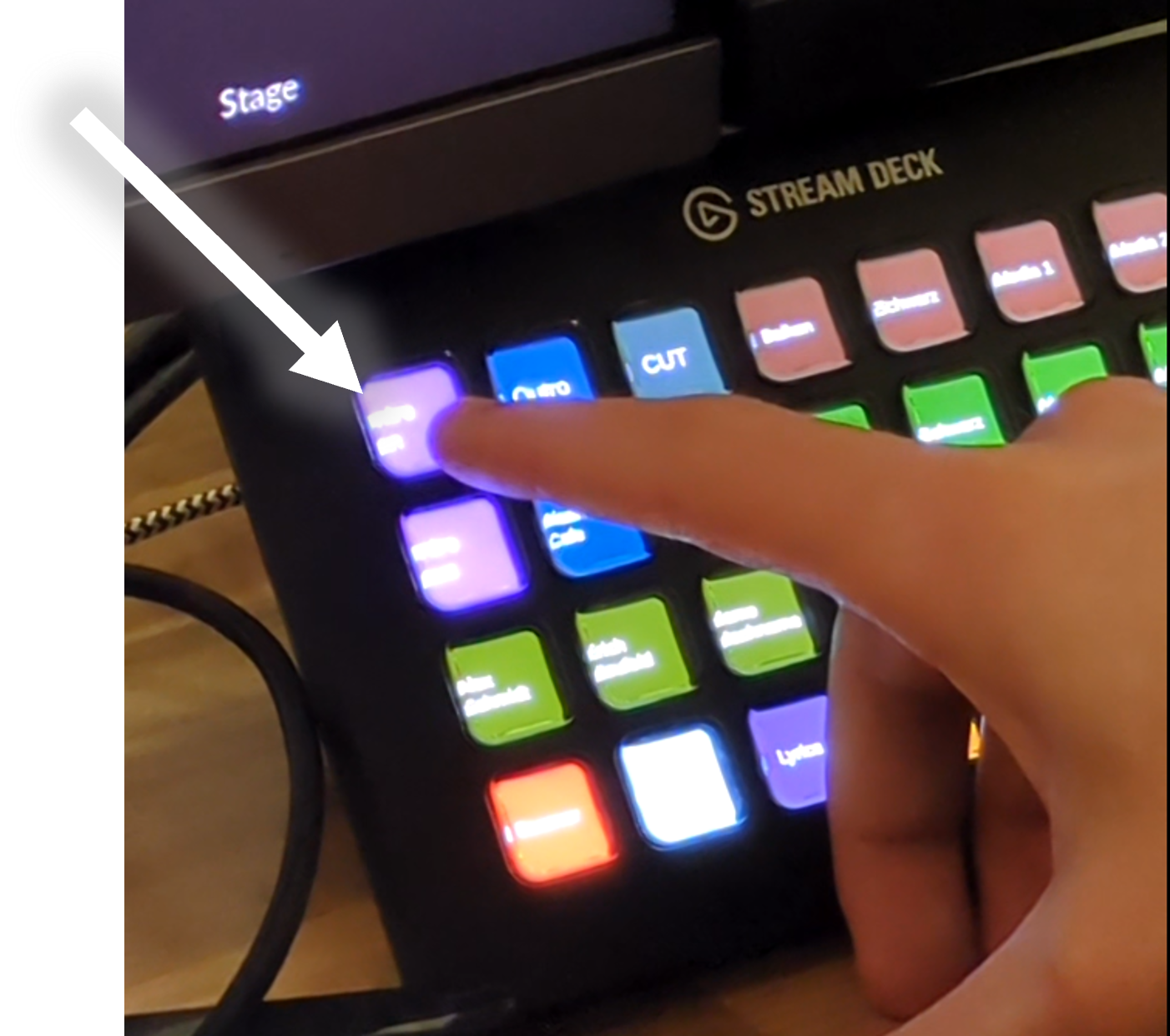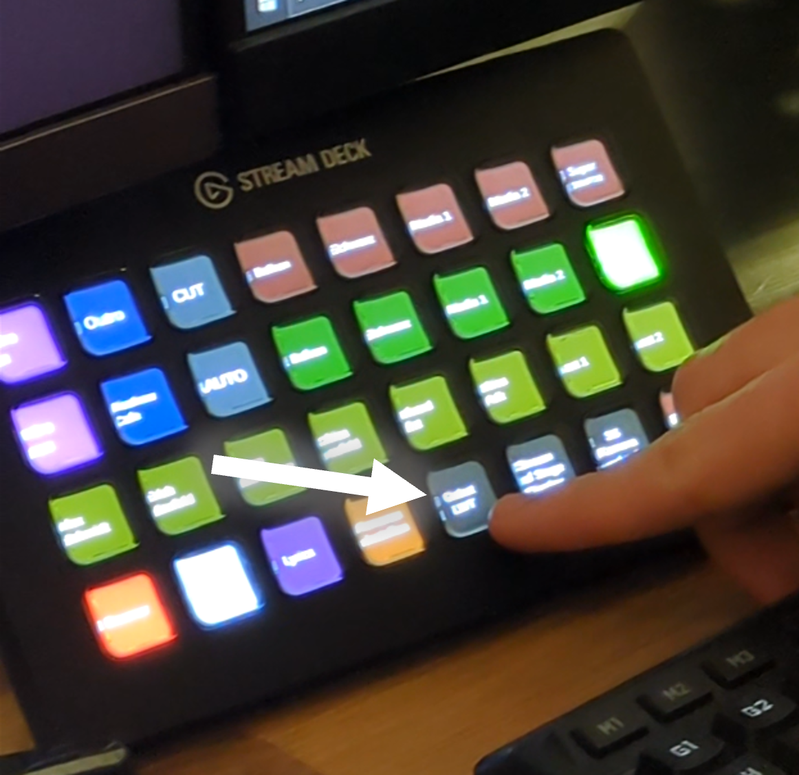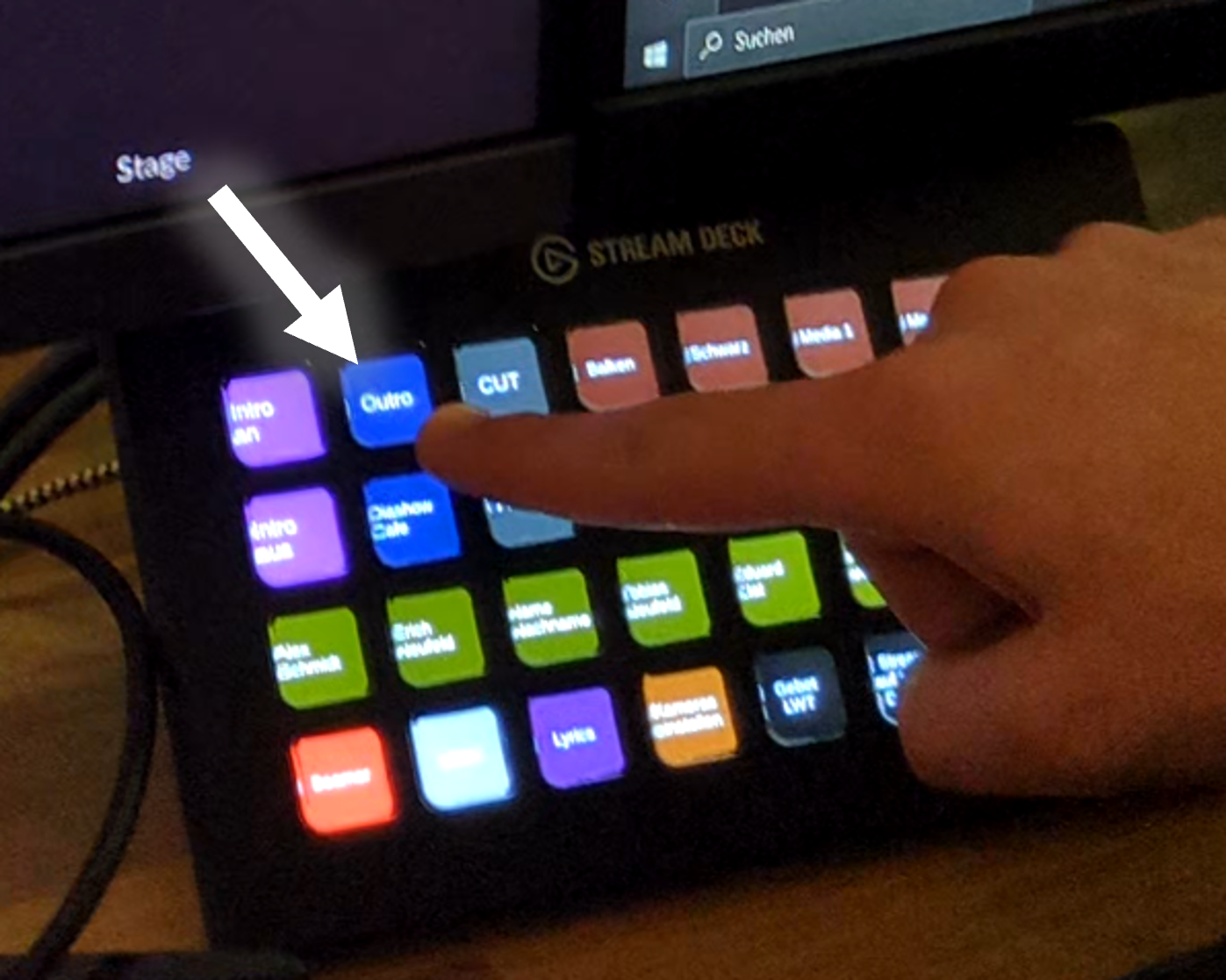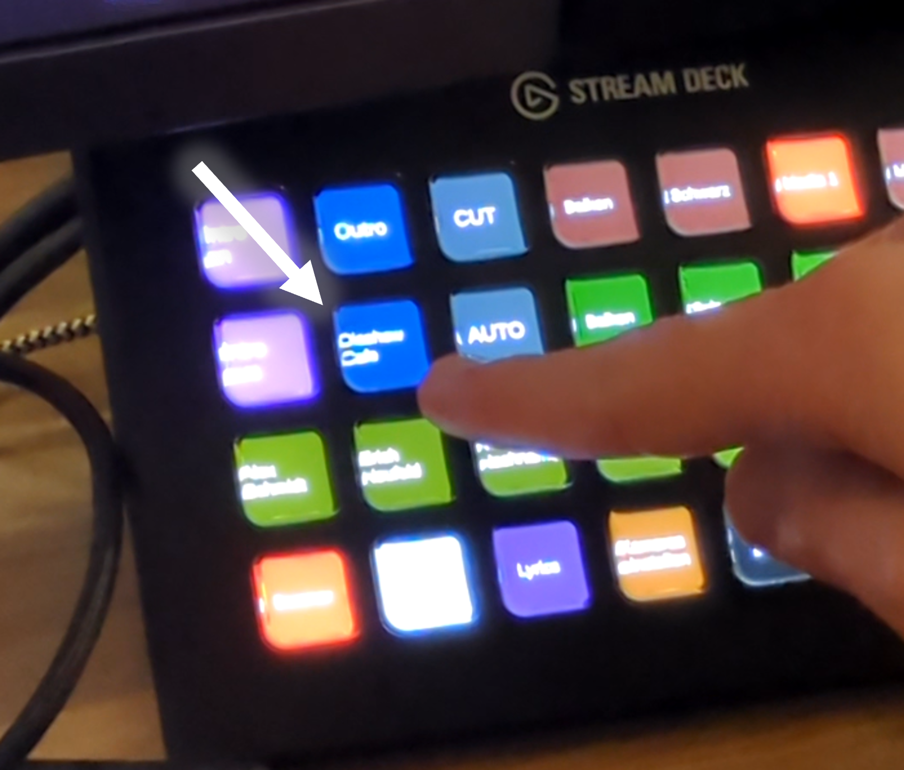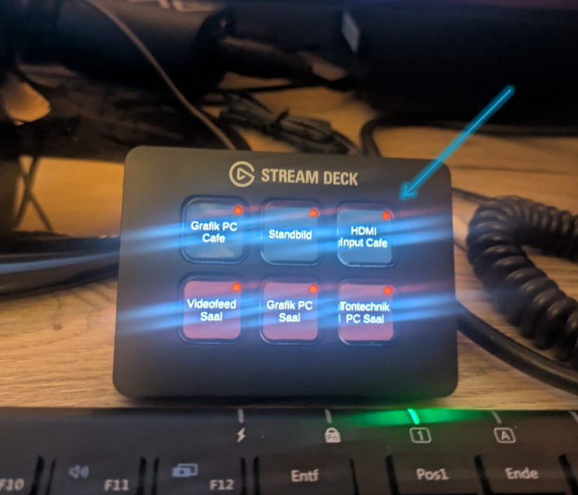 ℹ️ An den roten Punkten kann man erkennen, dass das Streamdeck keine Verbindung zum Bildmischer hat.